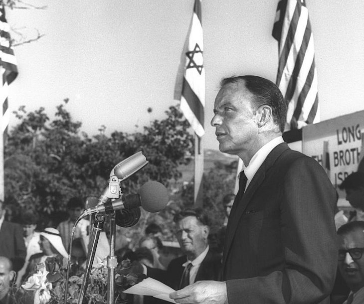 Frank Sinatra helped Teddy Kollek in 1948 transfer money to a ship full of munitions for Israel. Kollek, then a member of the Haganah, knew he was being watched by the FBI, so he couldn't risk going near the vessel with the funds. Kollek went to Sinatra's bar in New York, and when he ran into the singer, he divulged his mission. Sinatra came to Kollek's aid; he left the club's back door with a paper bag full of the money and brought it to the pier.