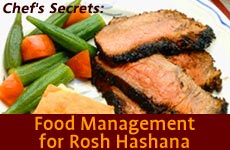 I have my menus out in front of me. I need to make some changes in order to really get the most out of the holiday. For example, fish and soup don't need to be served every meal. Prepare and freeze as much as you can before the holiday so you don't need to prepare too much on Rosh Hashana. Choose some simple recipes (and don't forget the Eruv Tavshilin!), like Herbed Schnitzel, Pasacove Rolled Breast of Turkey, or just plain roast chicken.