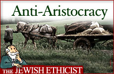This tithe is a fascinating example of the anti-aristocratic element present from the very beginning of Jewish history. To the best of my knowledge, the institution of hereditary landed gentry was present in virtually every civilized land until only a few generations ago, yet was found in not a single organized Jewish community since antiquity. Indeed, an intensely debated program for so-called Jewish "improvement" at the beginning of the 19th century counted among Jewish "failings" the following: "No class distinctions". (1)