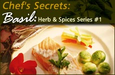 Basil is in. You won't go to a good restaurant or read a food magazine without seeing basil on the menu or in the recipes. Basil is a very versatile herb that can be used with tomatoes, fish, eggs, or really any savory dish. Basil darkens quickly after cutting. When cooking, I use it even when it's very dark. I always use it without the stems unless I use it in soup.