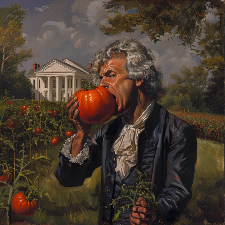 According to records of the time period Jefferson had created a stir when he made a display of eating a tomato in public. The entire audience were apprehensive to see their president enjoy what to them was considered a poisonous fruit at the time. Jefferson survived, and Americans began to incorporate tomatoes into their diets.