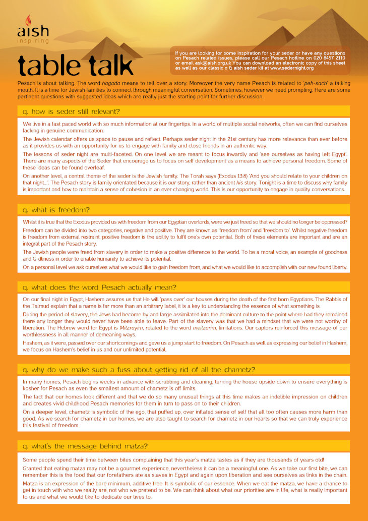 Some pertinent questions and ideas to jumpstart discussion at your Seder table.
