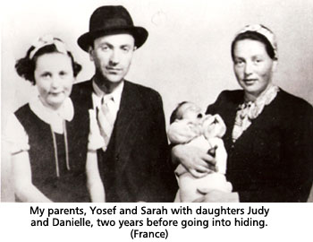 A fellow escapee in the underground told Sarah that he would take the children and make sure they made it to a safe place, and that she would be able to claim us after the war. “So,” says Danielle, “in 1943, my mother gave us up.”