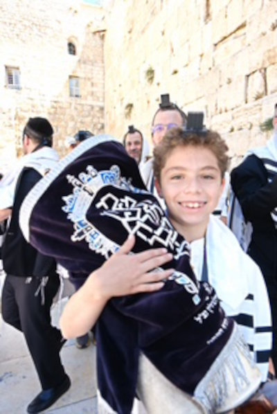 Hannah's great-grandson Yosi at the Western Wall during his Bar Mitzvah celebration