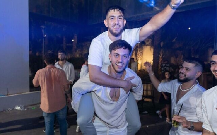 Itai (bottom), celebrating his brother’s wedding a week before October 7.