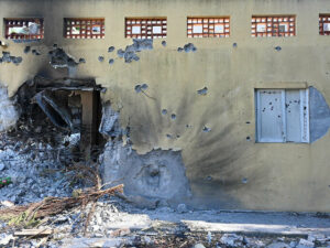 Next to the kindergarten building full of dozens of bullet holes, the sound of the burnt houses being demolished to make way for new homes echoes across the kibbutz. Yarden looks across the remains of the playground towards the trees lit up by the warmth of the morning sun and says, “We’re not giving up. Not ever. The kibbutz is building new homes every day and repairing its clinics and schools. We hope to be finished rebuilding in 2026 when most of Be’eri’s residents plan to return home.”