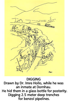 On Tisha B'Av (July 30th), they moved me to Dornhau, which has been described as the "Dry Crematorium." The pungent smell, the cruel labor, hunger, diseases, Kapos, SS commanders, etc., reduced the inmates to zombies, wasting away to death. The extreme hunger and starvation, poor sleeping conditions, the head counts, the unbearable toil in the trenches, drove men to such a low level, lower than a captured animal in a cage. All we thought of was food and survival. The mind was just blank most of the day. It was so unbearable that it is no wonder that I was not able to bring myself to speak about it for so many years.
