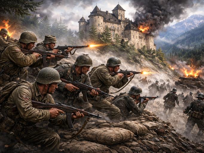 In the final days of WWII, one last, improbable battle unfolded inside a medieval castle where American soldiers and German defectors fought side by side against SS troops.