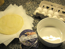 Stir yogurt in container with a fork or small whisk to blend. Add sugar or honey and mix well. If yogurt is a more fluid type add only one teaspoon of liquid egg, otherwise blend in 1 ½ teaspoons of liquid egg.