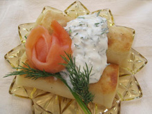 These upscale blintzes are a trendy version of the classic cheese filled blintz. Served with a sour cream dill sauce, these flavorful blintzes are sure to wow your guests!
