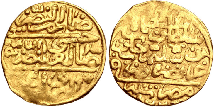 Gold coin of Suleiman the Magnificent, struck at the Cairo mint. Classical Numismatic Group, Inc.