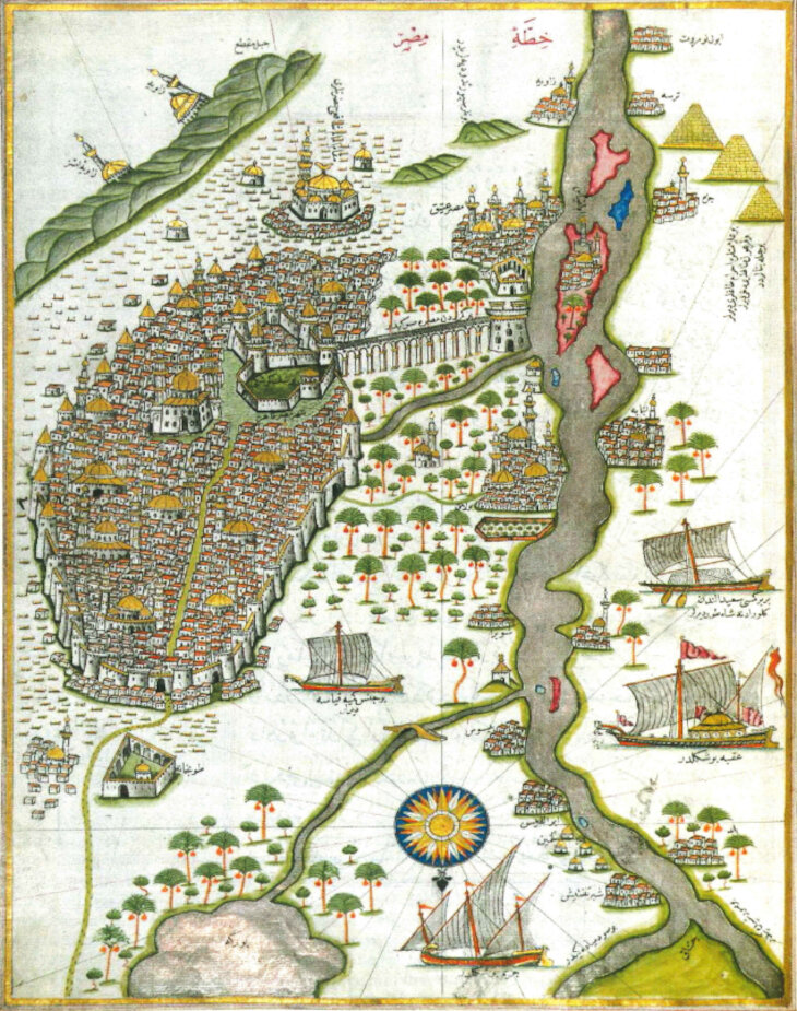 A map of Cairo drawn by Ottoman navigator Piri Reis and presented to Sultan Suleiman the Magnificent around 1525 AD. Piri Reis, Public domain, via Wikimedia Commons