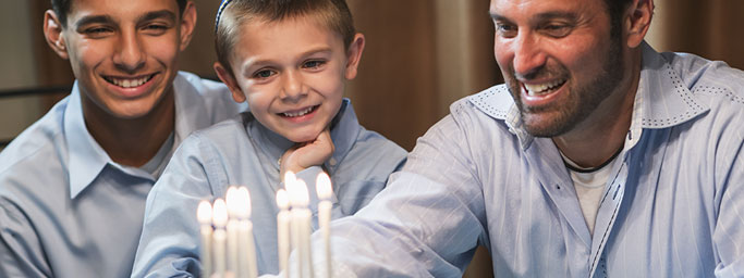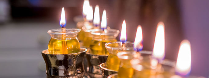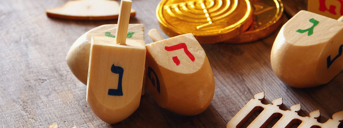 We light the menorah for the eight days of Hanukkah to commemorate the miracle. A menorah is lit in every household, and also in the synagogue. Special blessings are recited when we light the menorah. We also spin the dreidel (sivivon in Hebrew), a four-sided top with a Hebrew letter on each side. We play the dreidel game, which has deeper meaning and invites "inspiration from above.”