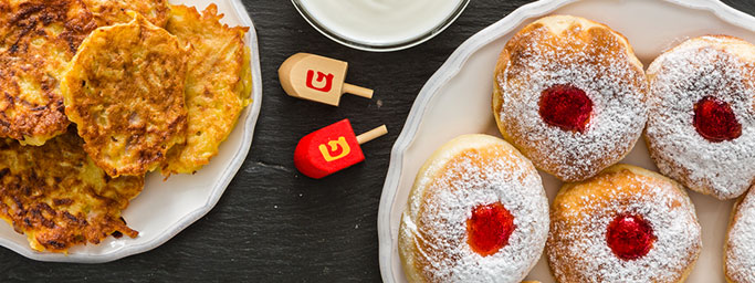 On Hanukkah, we commemorate the miracle of the oil by eating foods cooked with olive oil. Enjoy these fried potato pancake (latke) recipes. For the Israeli version of "oily food," use this how-to guide for great homemade doughnuts, sufganiyot.