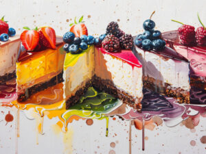 Here you go! Oreo Cookie, Ooey Gooey Caramel Toffee Cheesecake, Chocolate Mousse Cheesecake, and a few other treats like Brookies, Raspberry Coconut Bars and Strawberry Semi-Freddo too. On Shavuot, I tend to make extra special dairy desserts like these that are a bit richer and more decadent than usual. These are fan favorites that I know you will enjoy too.