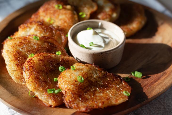 Once potatoes were introduced, they became a staple of the Eastern European diet and were used by Jews to make latkes, fried in schmaltz. Unfortunately, this evolution of the latke was now missing both references to Hanukkah, not having either cheese or olive oil in the recipe.13