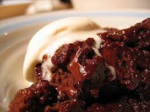 Bake for 25 - 30 minutes, or until the center is bubbly and looks almost set, like an undercooked brownie. Take out of the oven and let stand for 15 minutes. Serve in dessert dishes, spooning sauce from bottom of pan over top with pareve whipping cream or pareve ice cream.
