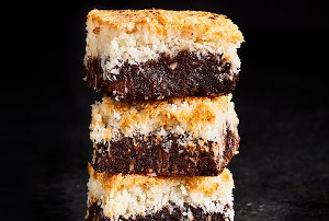 Preheat the oven to 375°F. Beat egg whites with a stand mixer fitted with the whisk attachment on medium speed until frothy, about 1 minute. With the mixer running on medium speed, slowly add granulated sugar, vanilla, and salt. Beat, gradually increasing speed to high, until stiff peaks form, about 2 minutes. Add coconut; beat on low speed until just combined, about 30 seconds. Spread coconut mixture in an even layer over brownie batter.