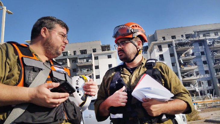 At the impact site in Beersheba, Natan’s team locates the bodies. They work under highly dangerous conditions. Walls and ceilings have collapsed, making it difficult to access the bodies.