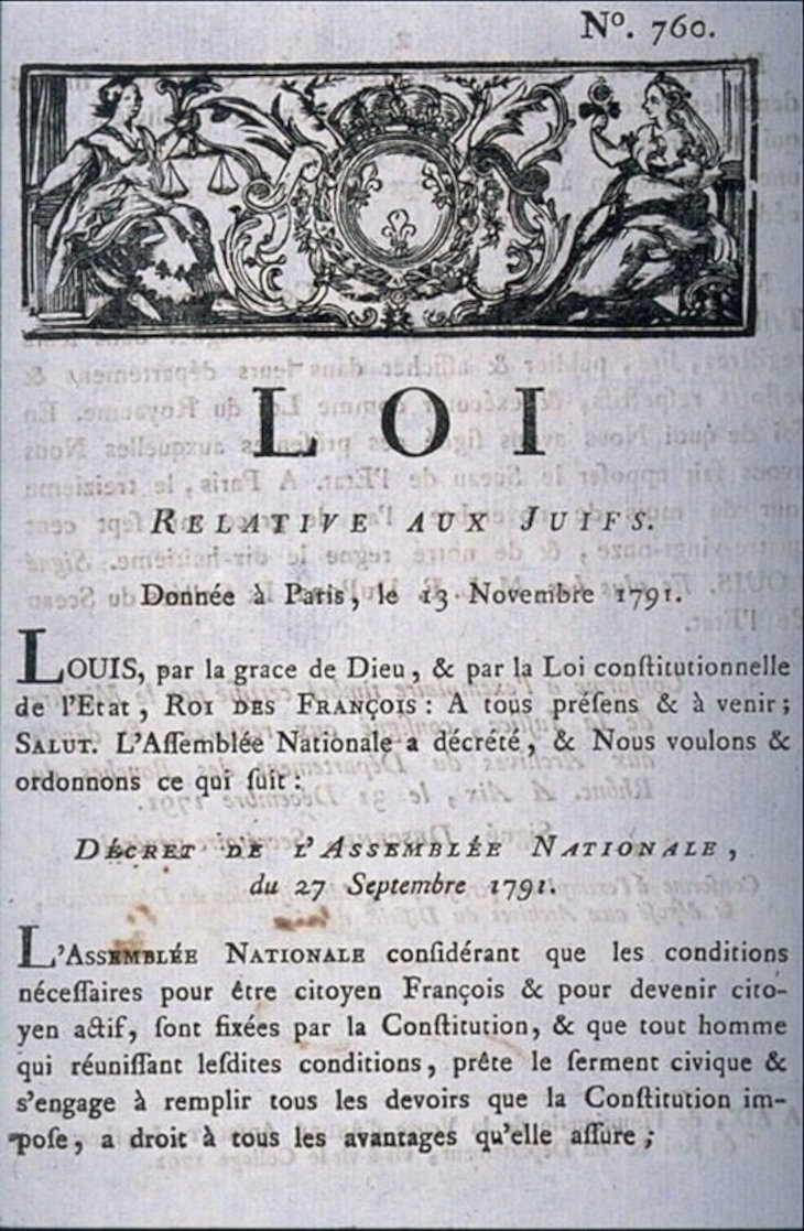 Decree proclaiming the emancipation of the Jews. Musée d'art et d'histoire du Judaïsme, Wikimedia Commons