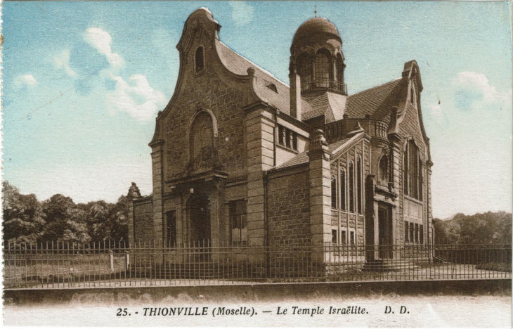 Postcard featuring an old synagogue in Thionville, Metz, France