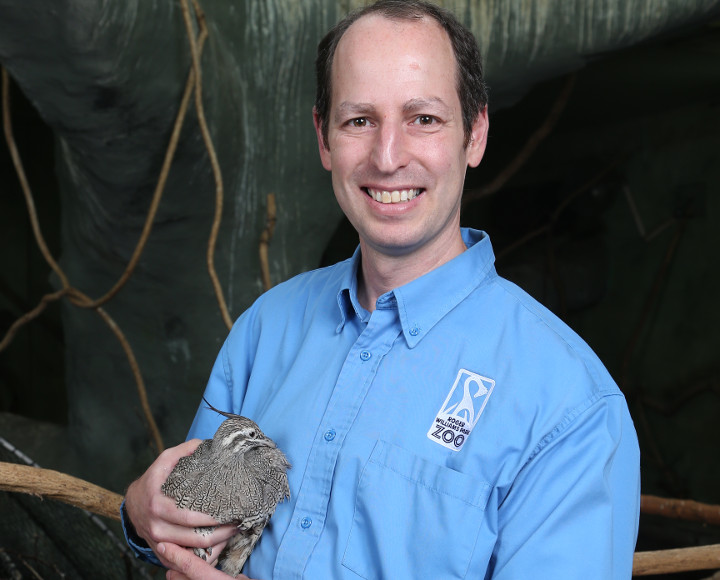 With Bert the Tinamou (Photo credit: David Silverman for Roger Williams Park Zoo)