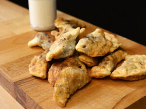 Prepare filling: Heat a large skillet over medium heat. Add the facon/pastrami and cook, stirring occasionally until browned and almost crisp, about 7 to 8 minutes. With a slotted spoon, transfer the facon to a plate; set aside.