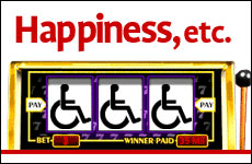 "Cynthia Jay-Brennan, 38," read the caption, "paralyzed five weeks after she was married, sits next to her $35 million Megabucks jackpot slot machine."