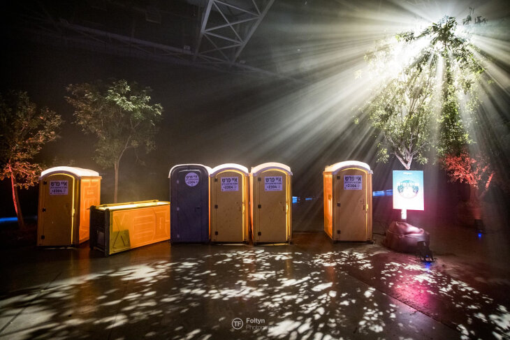 Porta-potties riddled with bullet holes at the ‘Nova 6.29’ exhibit (Courtesy Tribe of Nova)
