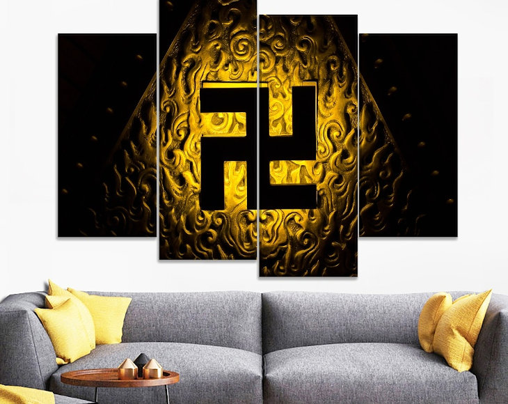 In northern Europe, this image was associated with the Norse god Thor, who was said to control storms and thunder and was one of the most powerful idols in the Norse pantheon. In Buddhism, swastikas represent the intellect of the Buddha. They are often imprinted into statues of Buddha on the heart, feet or hands and are sometimes used to decorate Buddhist temples and ritual clothing.