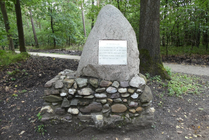 A memorial to the Bakkers at the site of the hidden village. G.Lanting, CC BY 4.0 <https://creativecommons.org/licenses/by/4.0>, via Wikimedia Commons