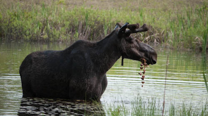 A moose at the pond at the bottom of our driveway