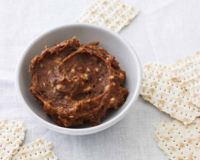 This charoset is gooey and fragrant with dried Mediterranean fruit. This one can be rolled into balls as well and then dusted with cinnamon and ground almonds.