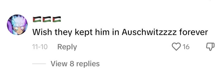 At the same time, our account has been flooded with hateful, antisemitic comments. Somehow, these must have all passed under the radar of the diligent TikTok moderators.