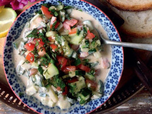 Adeena suggests topping Israeli salad with a drizzle of Tahini Sauce. Here’s her recipe: