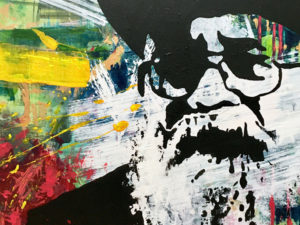 Vir Heroicus Sublimis, by Barnett Newman. The viewer is engulfed by the sheer size of this painting, 8 ft tall by 18 ft wide. In this piece, the red, white, and black vertical ‘zips’ are clearly defined with hard edges. Fair Use license. Wikiart.org