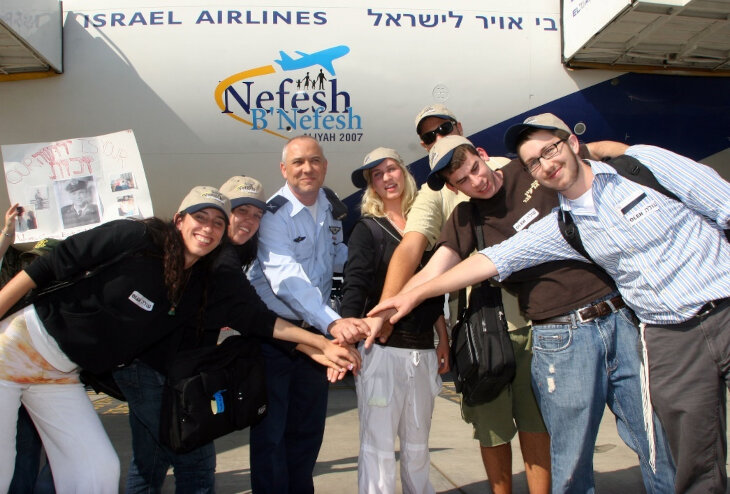 Arrival of a Nefesh B'Nefesh aliyah group flight from North America. Source: Eic413, Public domain, via Wikimedia Commons
