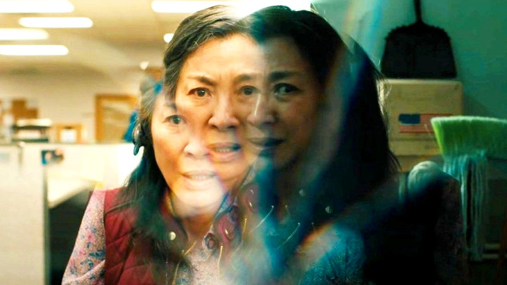 The movie builds this concept into a beautiful web of maximalist filmmaking and maximum action. Every maybe or could-have-been gives Evelyn Wang (Michelle Yeoh) the chance to tap into the mind of an alternate version of herself. In one world, she is a teppanyaki chef. In others, she’s a kung fu master/movie star, blind opera singer, and hot-dog-fingered romantic. There is a multiverse full of potential that she could have fulfilled, she just needs the right help to access the skills, ability, and knowledge she could have had.