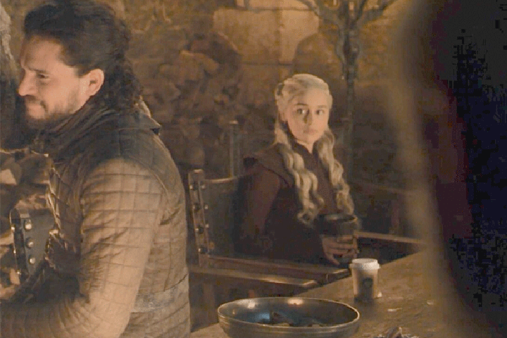 Tens of millions of faithful followers of Game of Thrones noticed the glaring error. In the fourth episode of the show’s last season, a celebratory feast in Winterfell included a very 21st-century Starbucks coffee cup sitting in front of Emilia Clarke’s Mother of Dragons Daenerys Targaryen among all the metal goblets of wine. Imagine – a latte time- machined back into the medieval era!