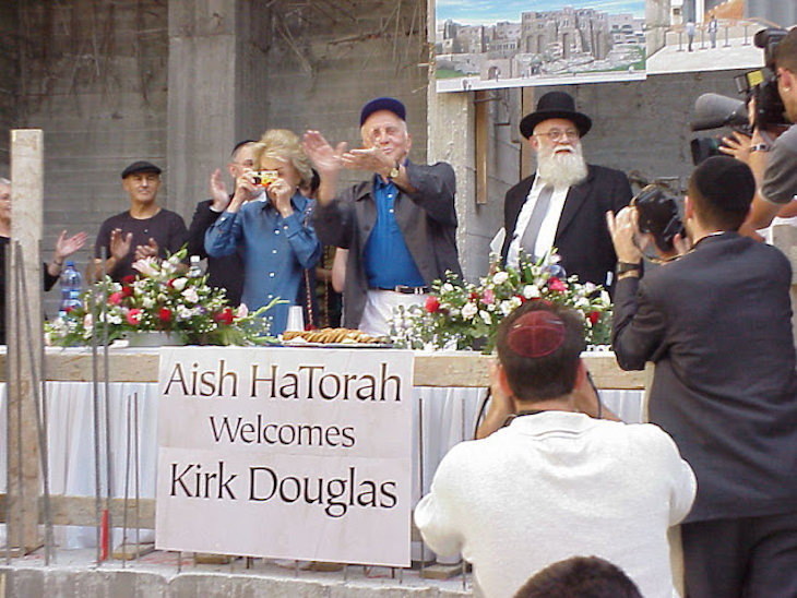 Kirk Douglas with Rabbi Noah Weinberg, dedicating the Kirk Douglas Theater in Jerusalem
