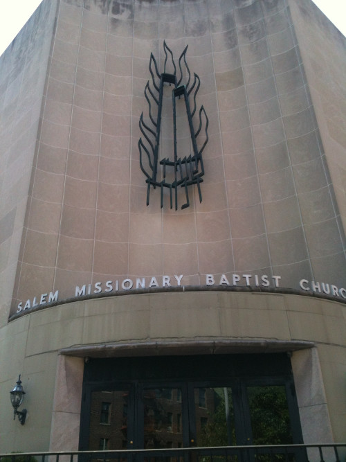 This former synagogue in Flatbush got me started on my whole project. The exterior still displays an unusual metal sculpture by Ludwig Wolpert, which reads “Shaare Torah” in Hebrew. It also shows the name of the current occupant, Salem Missionary Baptist Church. The Conservative congregation had an older building a few blocks away, but that was knocked down and a public elementary school built on the plot. This building seen here dates to the early 1950s but by 1979, with a dwindling congregation, Shaare Torah merged with the East Midwood Jewish Center a few miles south of it.