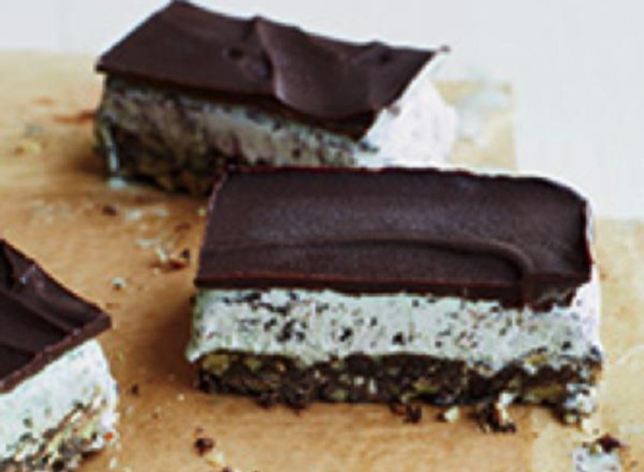 Pour melted over the ice cream and spread it evenly. Freeze for 2 hours, until set. Cut into small bars and serve. Defrost slightly before cutting.
