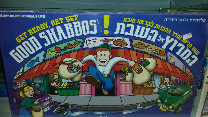 As the package says, “the game of Shabbos preparation- lots of fun and recreation,” kids can play this instead of cleaning the house and running to the grocery on Friday to help their parents prepare. So much education.