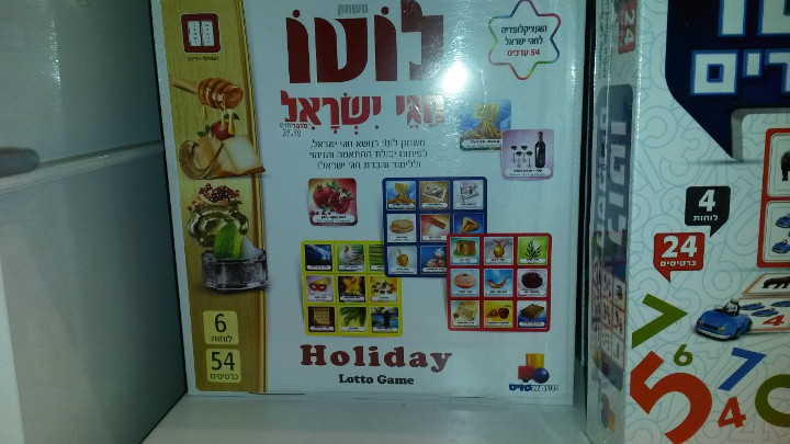 This game was put out by the Israeli lottery people, Lotto, as a gateway game. Dreidel doesn’t do it for everybody. This game teaches you about the different holidays of Israel and prepares you to play the lottery, in hopes that you will win and be able to afford the food you will need to buy for the holidays in Israel. Hamentashen and Matzah are very expensive nowadays.
