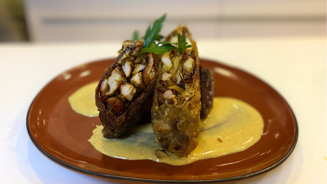 Now, donβt forget the dipping sauce. A quick tahini mixed with amba, creates a yellow, flavorful sauce that's a match made in culinary heaven for these egg rolls. Curious about amba? Dive into its history or whip up your own right here! Trust me, it's a taste explosion you won't want to miss.