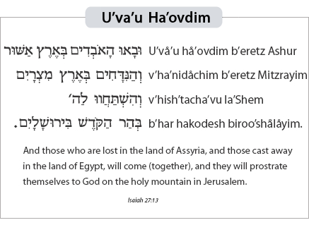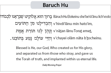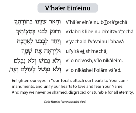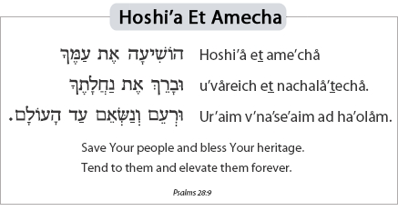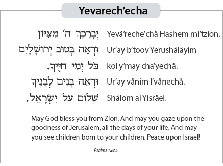 A note about pronunciation: There are two significant differences between classic Ashkenazi pronunciation, and Sefardi pronunciation (familiar as modern spoken Hebrew). In the transliterations below, Ashkenazi pronunciation follows these rules: