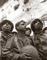 In the 1948 Arab-Israeli war, when the ceasefire lines were drawn, Jerusalem was divided and Jews were once again banished from the Western Wall, permitted only to gaze across the barbed wire from afar... across the endless expanse of time.