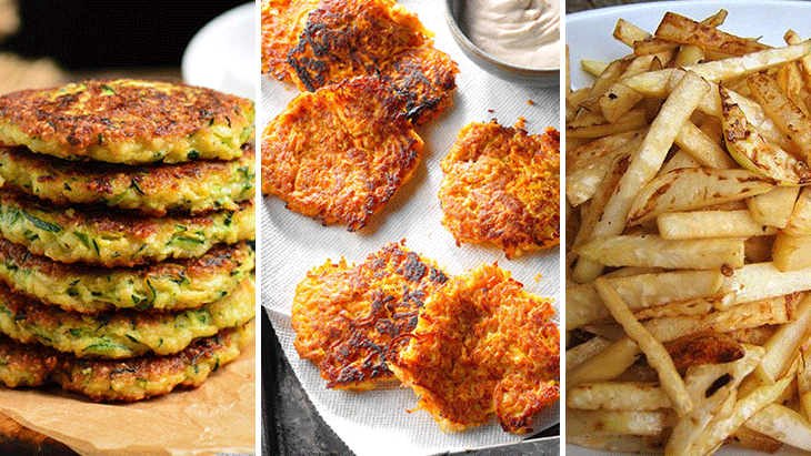 Add variety! Traditional latkes can be prepared with more than just potatoes! Try latkes from Sephardic and Yemenite traditions, as well, made from leeks and carrots, zucchini, sweet potatoes and apples. These offer way more vitamins and antioxidants than humble potatoes!
