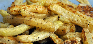 Sprinkle with olive oil, ½ to 1 tsp. of sea salt, pinch of black pepper, and 1 tsp. of garlic powder.