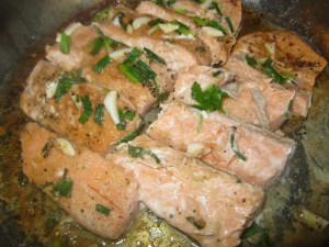 Place salmon fillets in a baking dish. Mix dressing ingredients and pour on fish fillets. Decorate with chopped fresh dill and/or parsley.